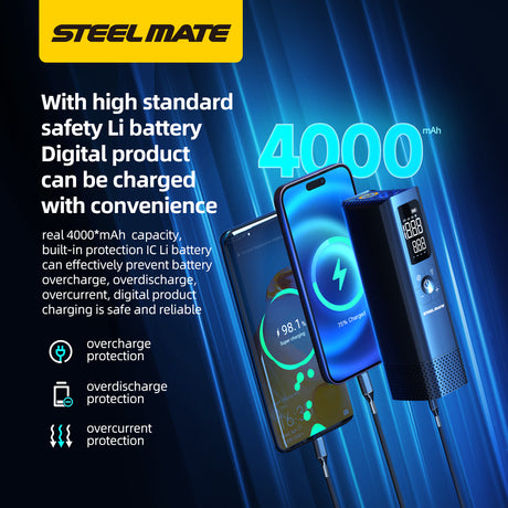 Steelmate Portable Mini Tire Inflator/Air Pump PO7 | 4 in 1 with LED Display 铁将军